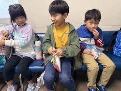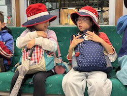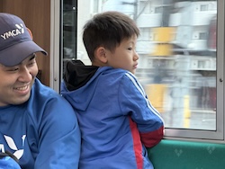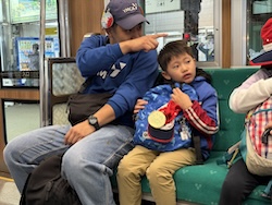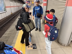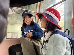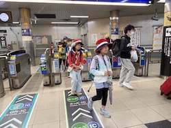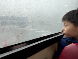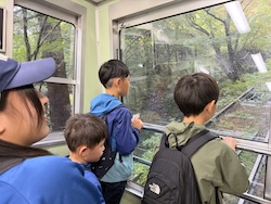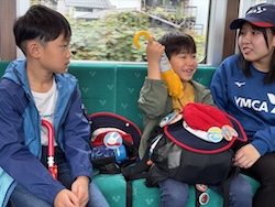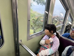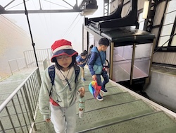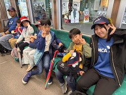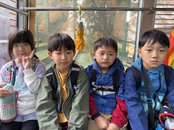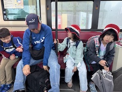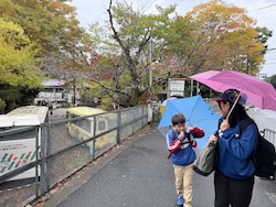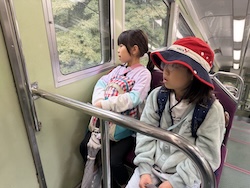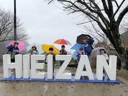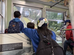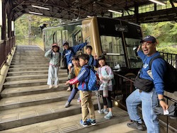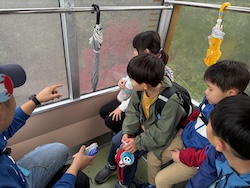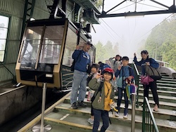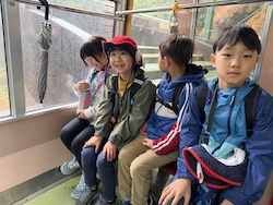 あいにくの雨ですが元気に出発です。午前はいろんな乗り物に乗って比叡山へ向かいます。