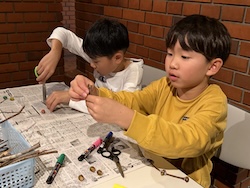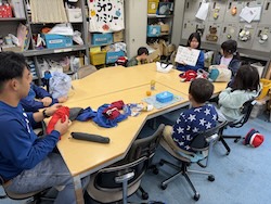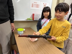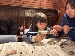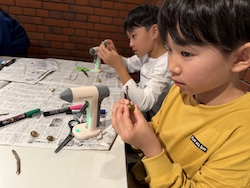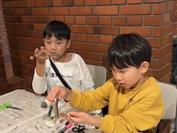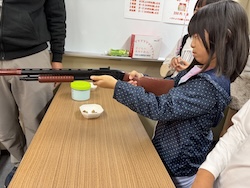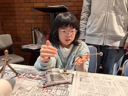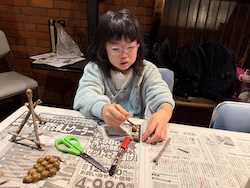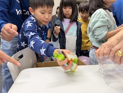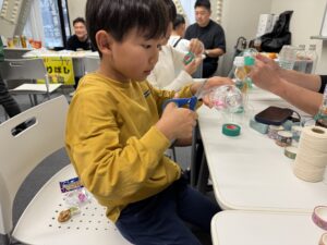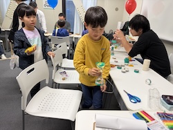 割り箸鉄砲、スライム、けん玉作りにも作りにも挑戦しました。