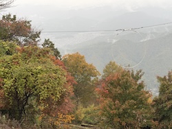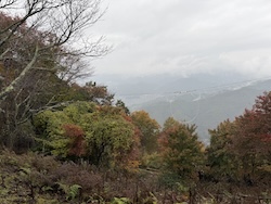 雲の切れ間から麓が見えました。紅葉も感じることができました。