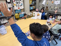 京都YMCAに帰ってきて、食育の時間。旬の食べ物「きのこ」について話をしてもらいました。