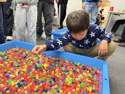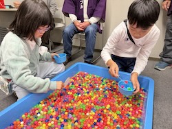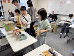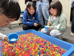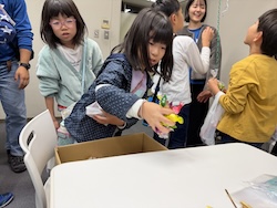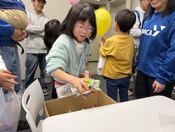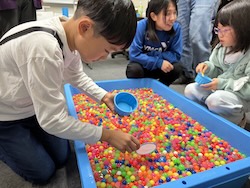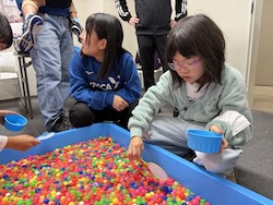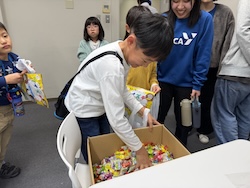 お菓子のつかみ取り。いっぱいつかめましたね。