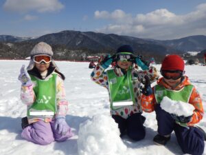 小学生の雪遊びキャンプは13名のお友達があつまりました!みんな朝から元気そう!