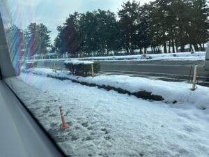 滋賀県に入ると早速雪が見れました。少しずつ雪が増えていく様子に、子どもたちはワクワク。雪で遊ぶのを待ち遠しく思っているようでした。