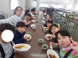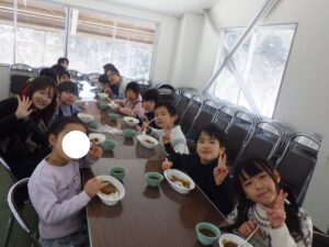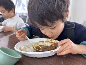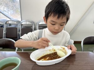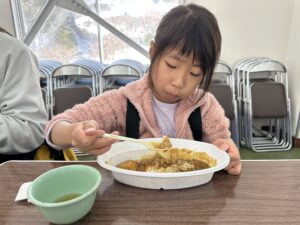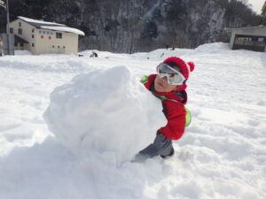 午前中の雪遊びはあっという間!まだ遊びたいところですが、早めにごはんを食べて午後は長めに遊べるようにしよう!