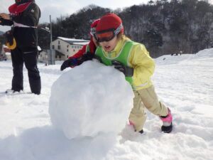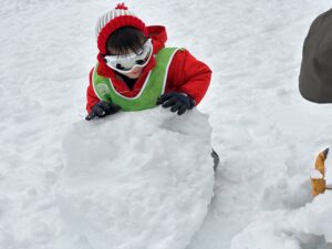 お着替えが済んだグループから外に出て早速雪遊びタイム⭐︎ 柔らかくて湿っぽくない、いい雪です!