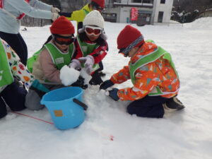 グループのお友達と一緒に 楽しく雪遊びができたね!