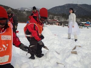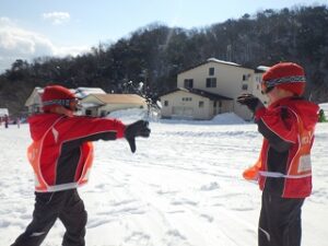 少し雪になれ合たところで、グループ対抗で遊びました。