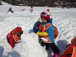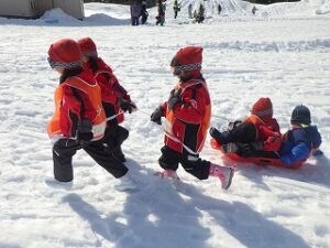 穴掘ったり、山作ったり、ソリを使ったり…グループのお友だちと思い思いに遊びが発展していきます。