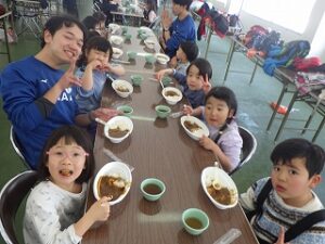 たくさん遊んでおなかがすきました。定番のカレーライスをいただきます。