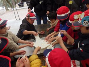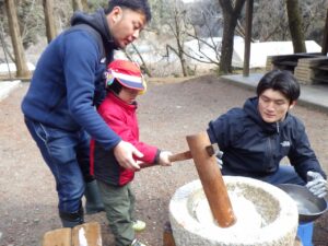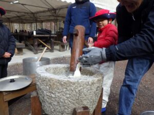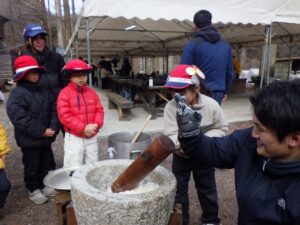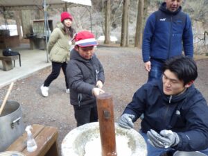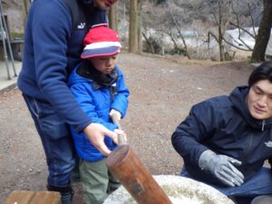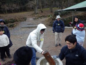 寒い中ご参加くださりありがとうございました。保護者の皆様も力をお借りしたことで、大成功な餅つきになりましたね。