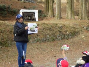 もぐもぐチャレンジャーの時間。るかリーダーがこれからみんなが挑戦する「餅つき」についての話をしてくれました。
