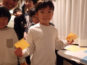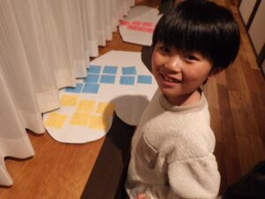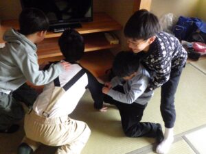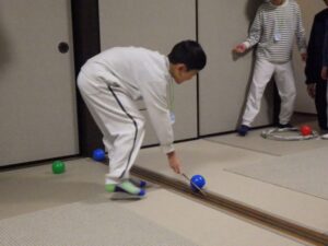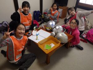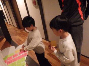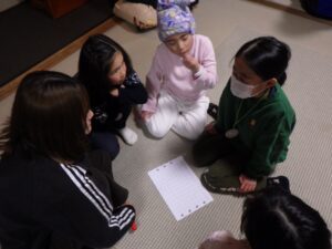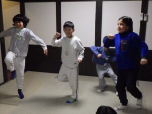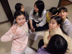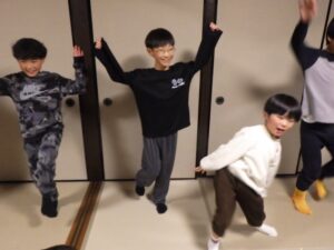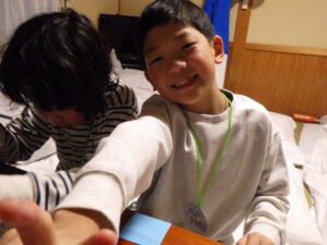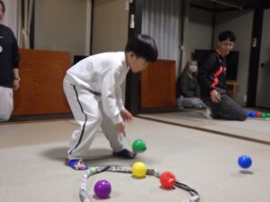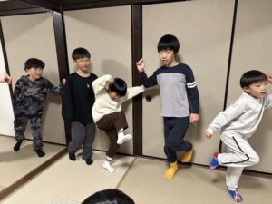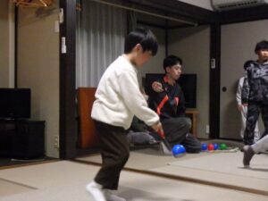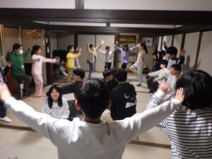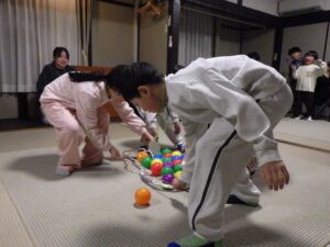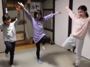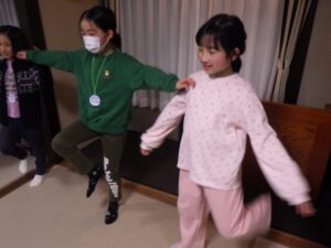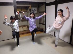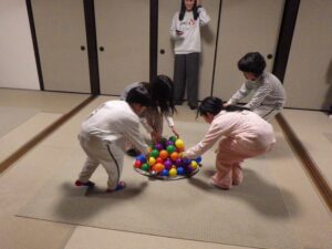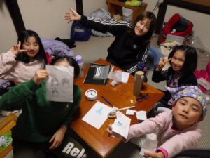 これがとっても難しく、みんなが揃ってできなかったので明日の朝再挑戦することに!(この後にお部屋で猛練習するグループもありました。)