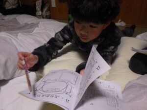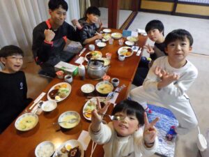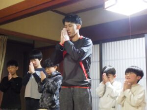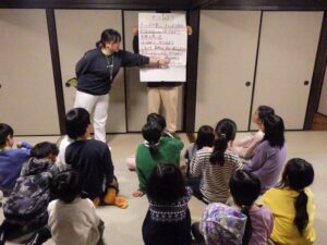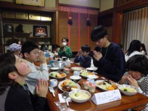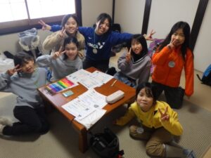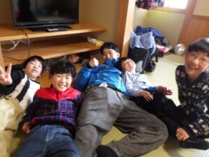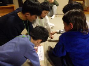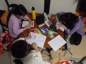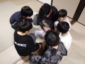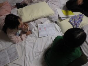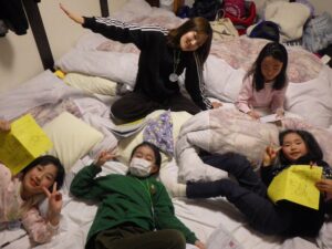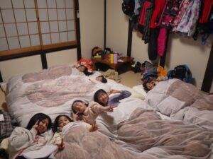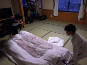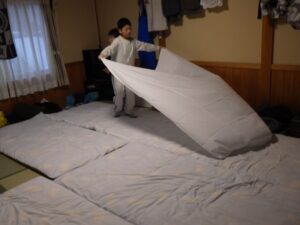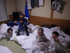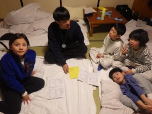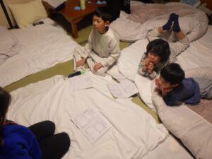 民宿に戻ってお風呂とグループタイム。もうお布団を敷いているグループもありました…早い。