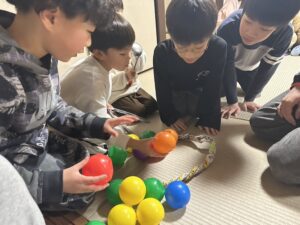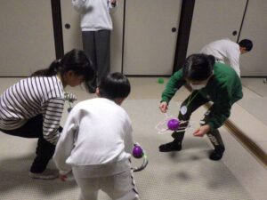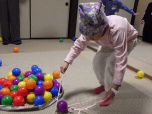与えられた道具で たくさんのボールを集める遊び。
