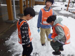 途中で雪遊びを挟みながら休憩もしています。