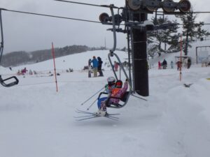スキーの経験がある子どもたちは、早速リフトに乗って山頂から滑っていきました。
