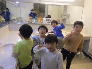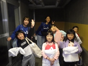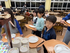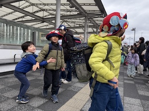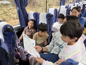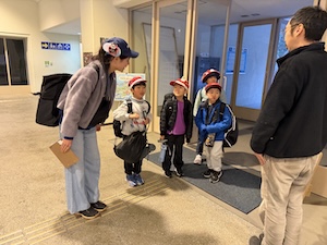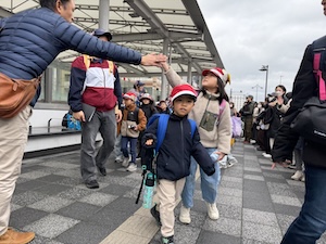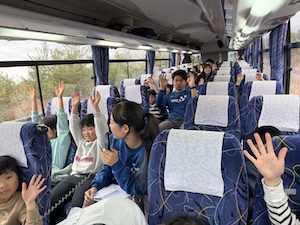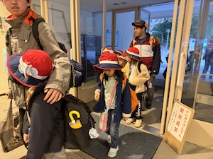 今年度最後のプログラムは、京都YMCA自然体験学習プログラム全チームで合同宿泊プログラムです。おうちの人に見送られて元気に出発です。