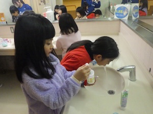 食後はリーダー劇『シアターチャレンジャー』施設の中で気をつけることを紹介してくれました。
