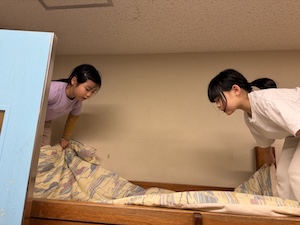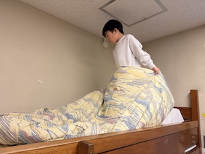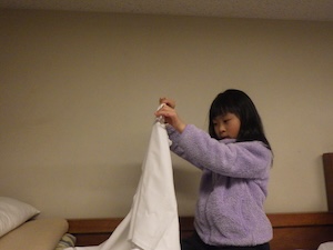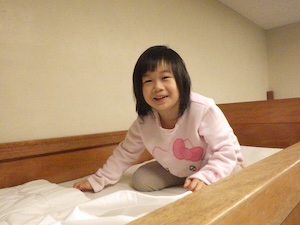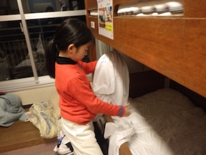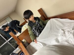 1日目はあっという間に終了。寝る準備をしてベッドに入りました。