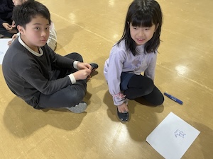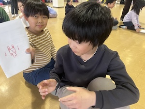 午前は4チーム(野外人、ワイルドエキスパート、フィールドアドベンチャー、ラビットクラブ)合同の交流プログラムです。野外人チームのみんながリードしてくれ、楽しい遊びをたくさんしてくれました。