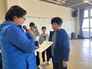 続いて皆勤賞・精勤賞の表彰。年間70%以上の出席で精勤賞がもらえます。ワイルドエキスパートからは4名が表彰されました。