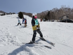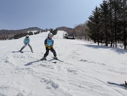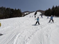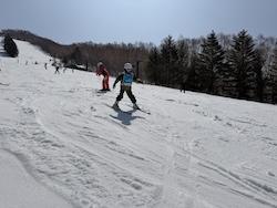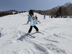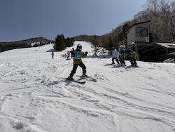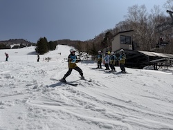 今日もいい天気。上空の寒気のおかげで気温よりは涼しく感じます。スキー講習開始です。