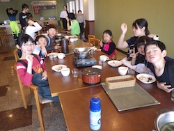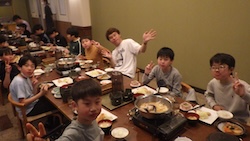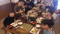 スキーキャンプ最後の夕食です。とてもにぎやかでした。