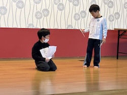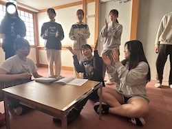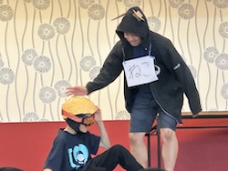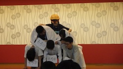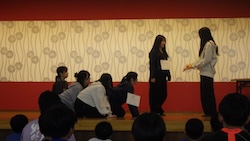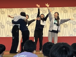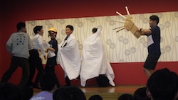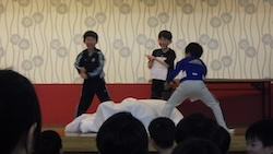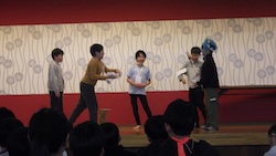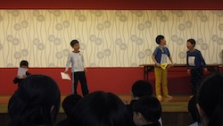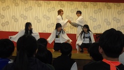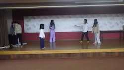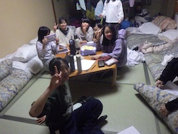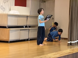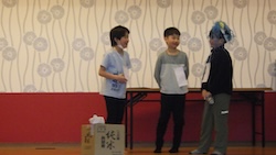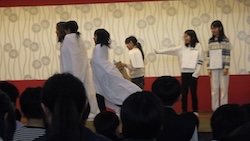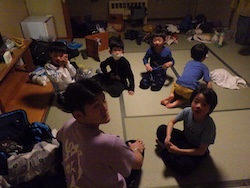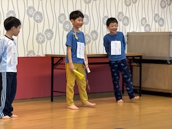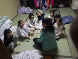 今夜は最後の夜。みんなで集まりグループで考えたスタンツ(劇)を発表しました。