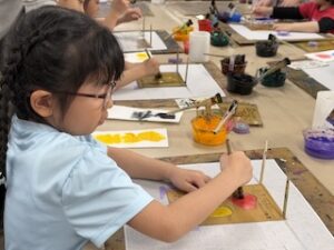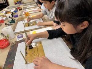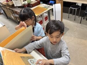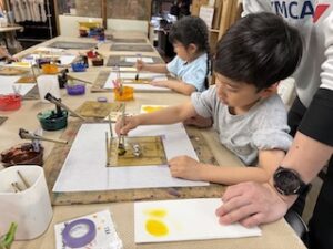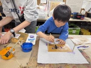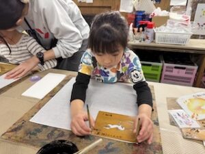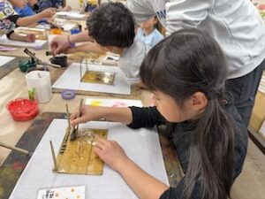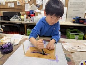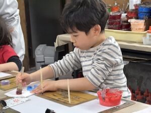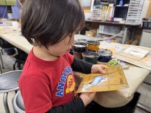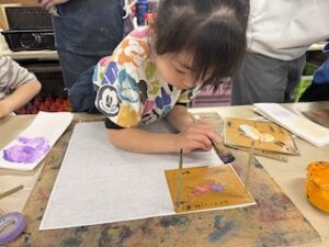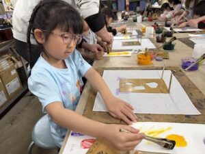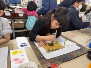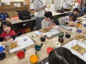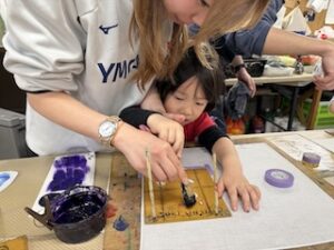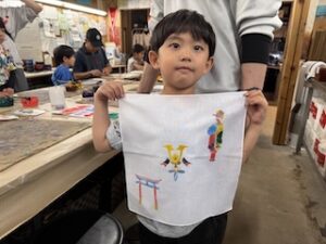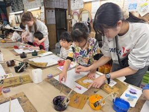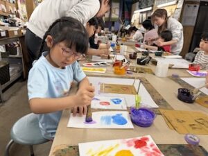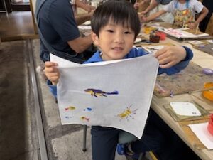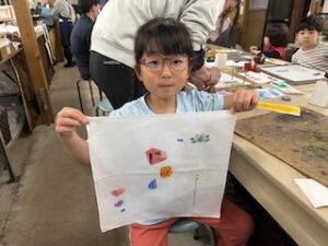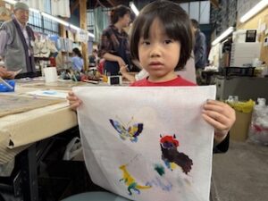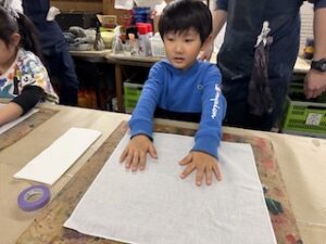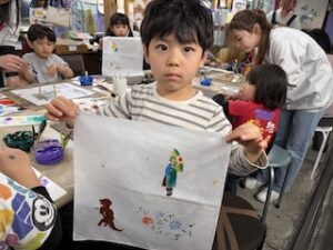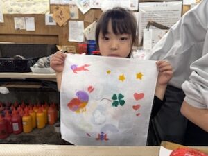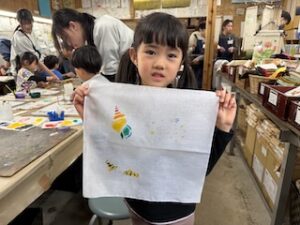 自分で型を選んで、色を染めてオリジナルのハンカチを作ります。