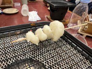 5つずつ串に刺し、コンロで焼いたら食べられます。