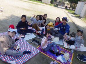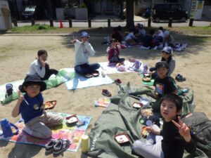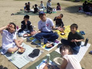今日はレジャーシートを敷いてお昼ごはんです。
