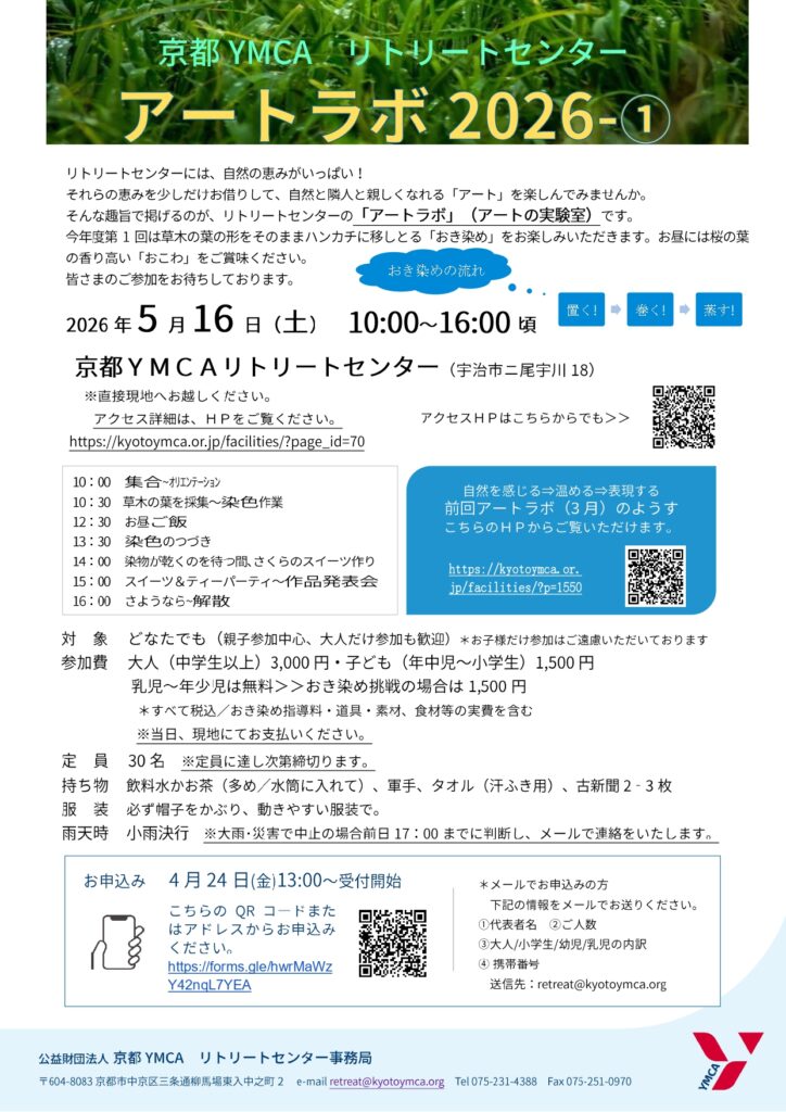 場 所 京都YMCAリトリートセンター(直接現地までお越しください)