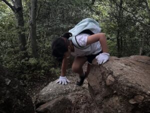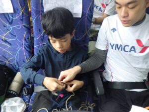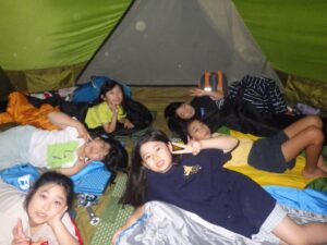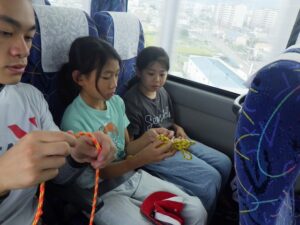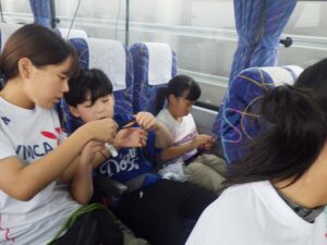 2か月ぶりのアドベンチャー!前期最後はお泊まりプログラムです。まずはバスで1時間半ほどの移動。ゲームで遊びながら、ロープワークや野外技術の復習をしました。