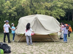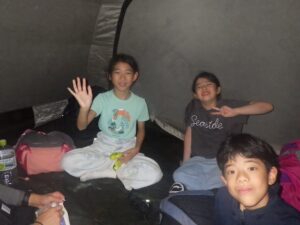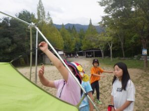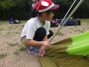 強い風が吹いて、テントを立てるのが難しかったようです。ちょっとだけ時間がかかりました。