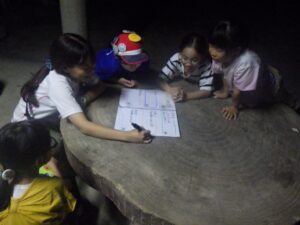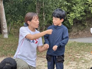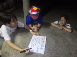続いて、アウトドアアドベンチャーです。子どもたちが用意しているヘッドライトの効果的な使い方や、暗い山道を歩くときの注意点を聞きました。
