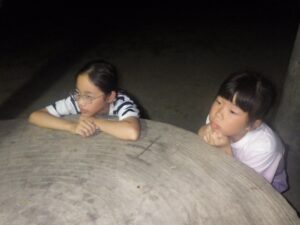「もしかしてここから万博見える?」という子の発言で気づきました。土曜日は万博花火の日ですね!展望台から北西の方向に万博があるはずですが、目視では全くわからないので、花火が打ち上がる時間まで待つことにしました。