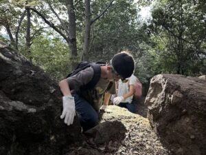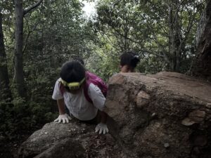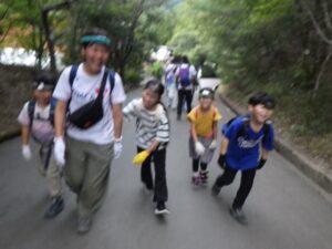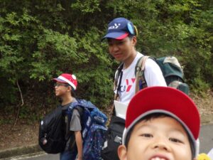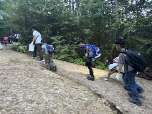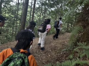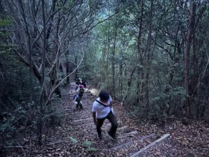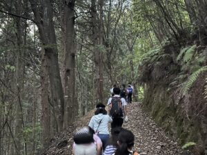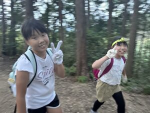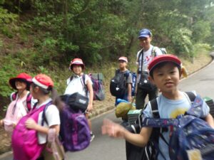 登山開始から、勾配のある山道がずっと続きました。あとどれくらいー?の声が少しづつ増えてきた時に、ゴールの展望台が見えました!!
