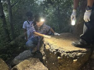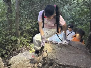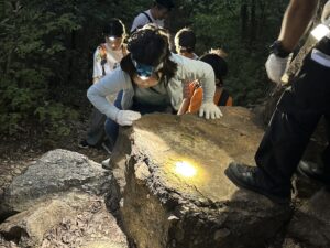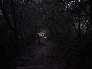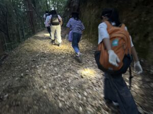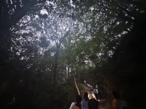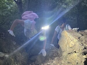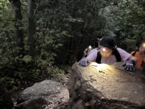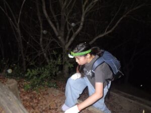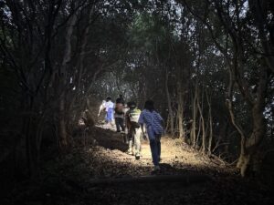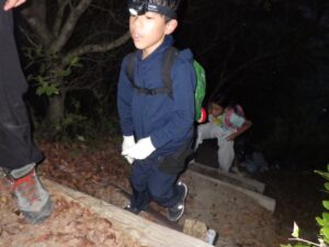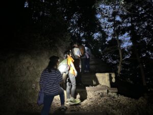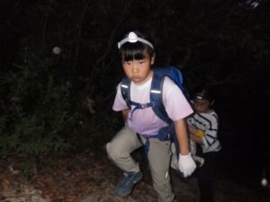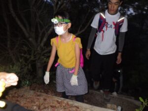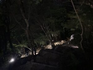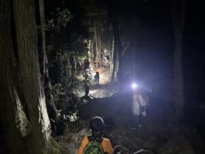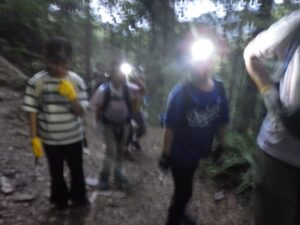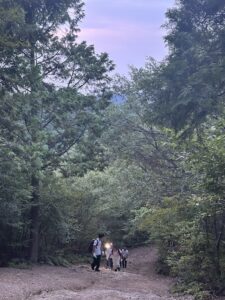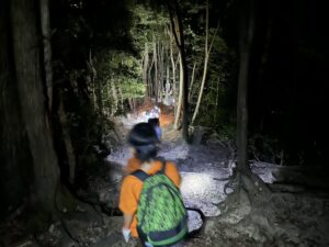 日中に登山をするのよりも、虫の鳴き声が多い気がする…? 薄暗いからこそ、聴覚が敏感になります。