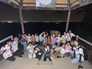 風が涼しくてきもちいい〜。街の光も綺麗に見えます!ここで集合写真⭐︎