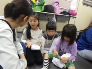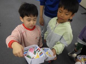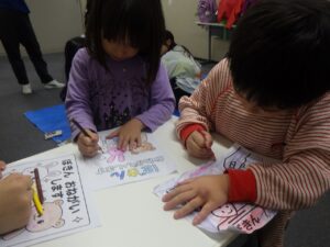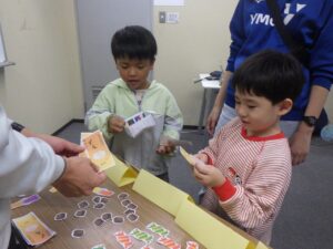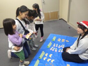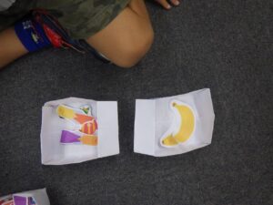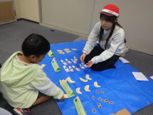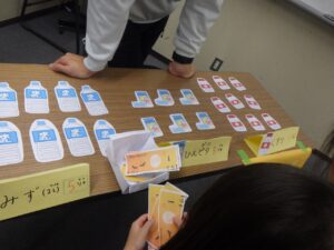 「➀風邪をひいた子のためにお買い物をしよう」「➁遠足にいくから買い物をしよう」というテーマでした。