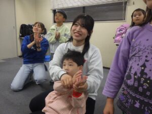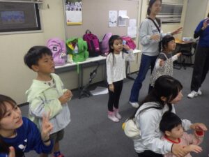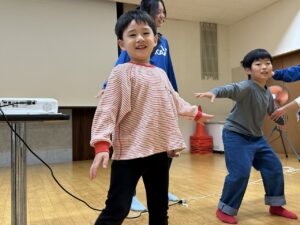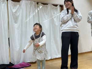 年上の子どもたちがノリノリで遊ぶ姿に圧倒される子もいましたが(笑) にこにこで楽しんでいました☆