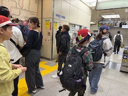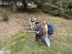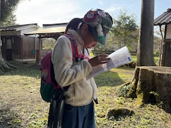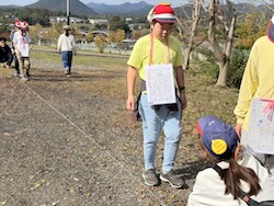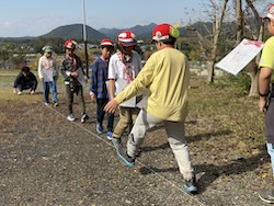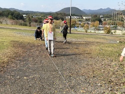 続いて歩測をしました。10mを何歩で歩けるのか測り、歩くときに役に立てます。