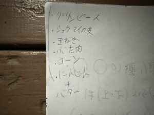 それぞれの料理に入れる食材もリストにしました。しゅうまいは具沢山になりそうです…