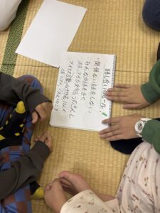 みんなでしっかり意見を出し合って話し合おうね、と前置きをしてから始めたおかげか、よく喋ってお互いの考えをまとめようとしていました。