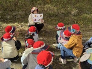 続いて食育「もぐもぐチャレンジャー」の時間。今回は秋が旬の芋について教えてもらいました。