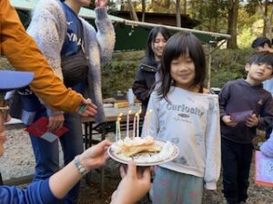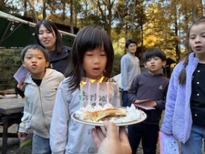 パーティーの最後はお誕生会「バースデーチャレンジャー」11月生まれのお友達をお祝いしました。