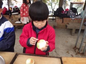 今日が誕生日のお友達がいたので、特別デコレーションのアップルパイでお祝いしました!