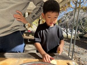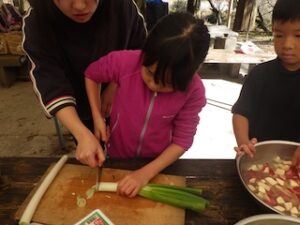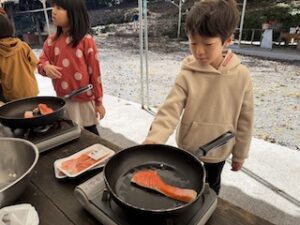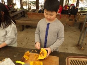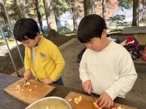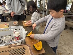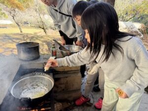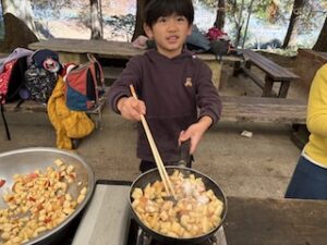 今月は野外料理に挑戦します。食欲の秋、美味しい料理をたくさん食べよう!