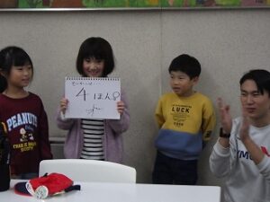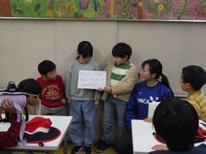 きかせてチャレンジャーの時間です。グループで考えたクイズを出して答えてもらいました。