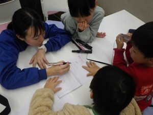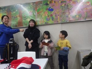 今回は雨天プログラムでしたが、グループでたくさんお話ができましたね。次回1月はお餅つきに挑戦です。おうちの人も参加できるプログラムですので、たくさんのご参加お待ちしています。